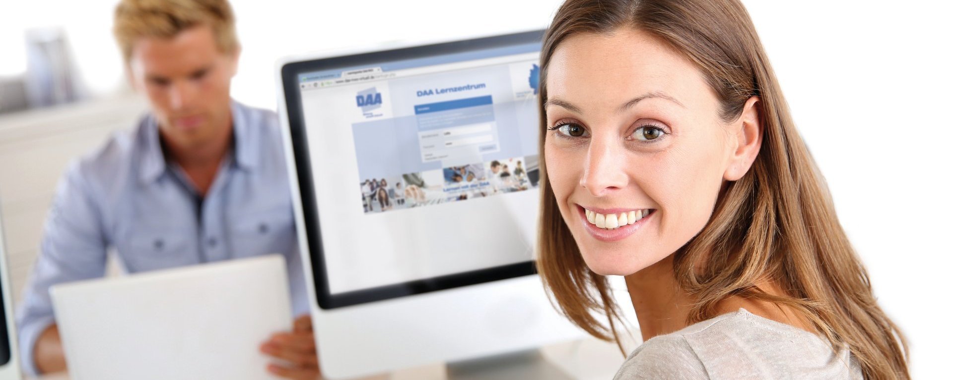 Sie selbst sind vor Ort am Standort der DAA und nehmen mit Laptop / PC, Kopfhörer und Mikrofon am Unterricht teil. Sie bearbeiten Aufgaben, können Fragen stellen und tauschen sich in der Gruppe über Arbeitsergebnisse aus. Unsere erfahrenen Lehrkräfte begleiten Sie kontinuierlich. Sie sind jederzeit für Fragen da und unterstützen Sie individuell mit zu Ihrem Wissensstand passenden Aufgaben. So werden Sie fit für die Prüfung.